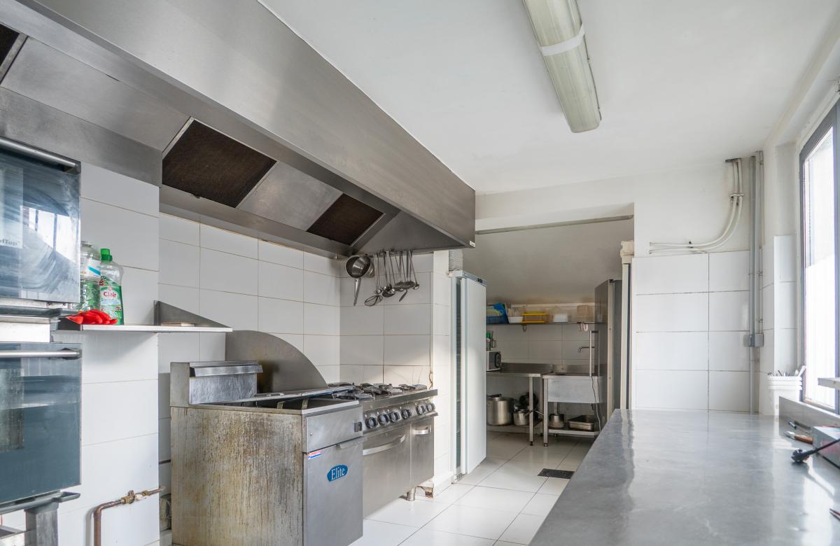 La partie commerciale se compose d’une salle de réception lumineuse de 53 m2 et d’une cuisine professionnelle fonctionnelle de 16 m2.