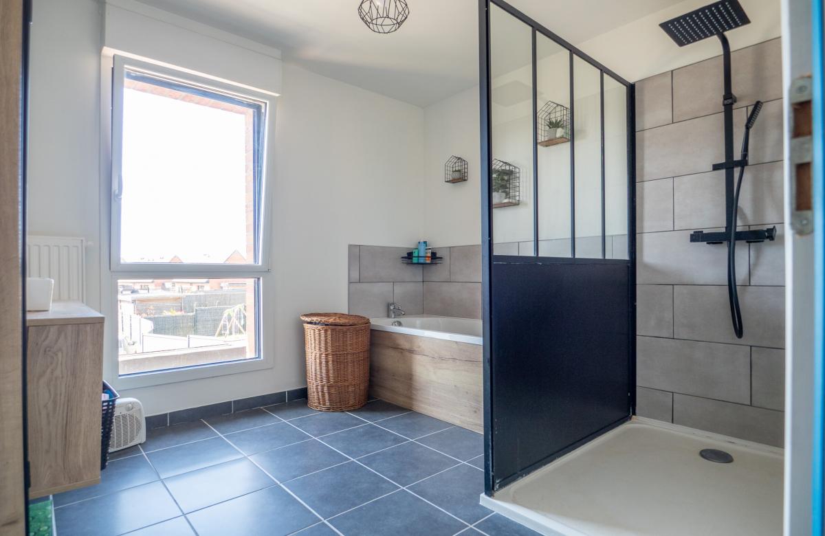 À l’étage, vous trouverez 3 chambres avec placards intégrés, offrant de nombreux rangements, ainsi qu’une salle de bain moderne.