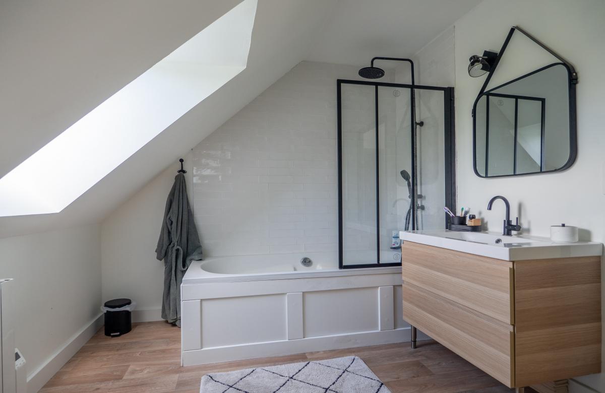 1 er étage : 3 grandes Chambres + 1 Salle de Bains - Wc -