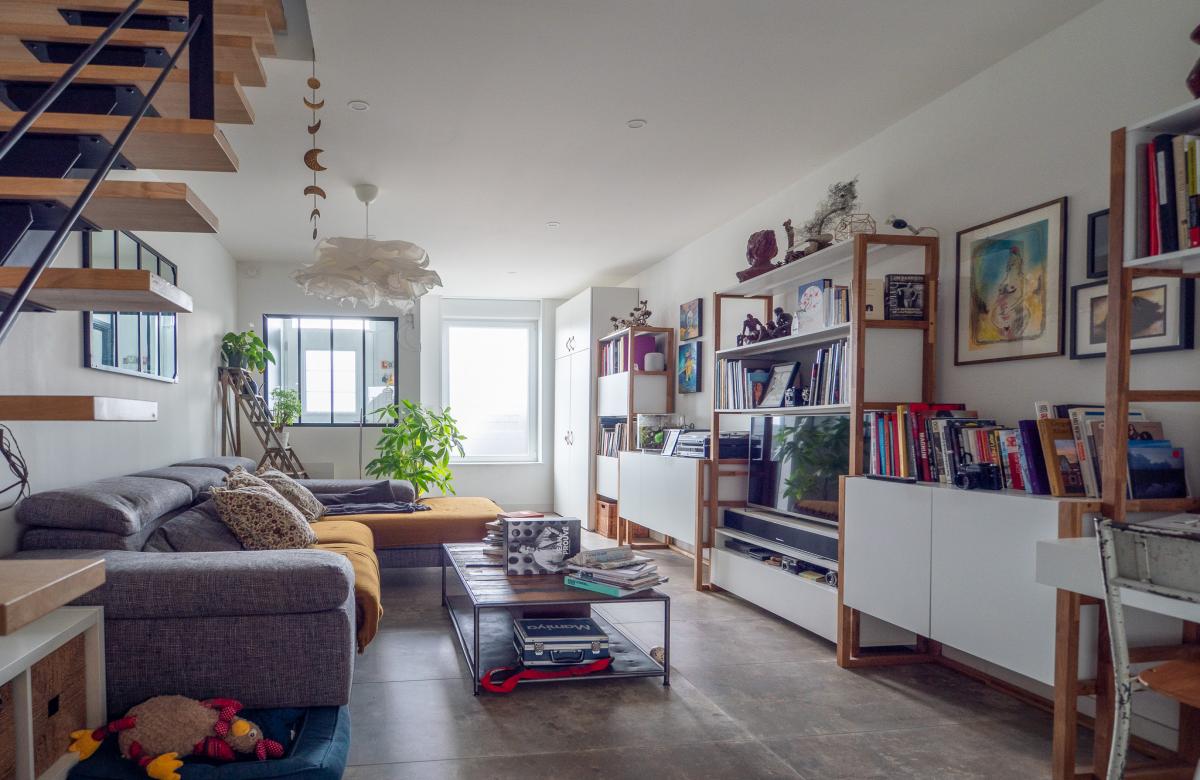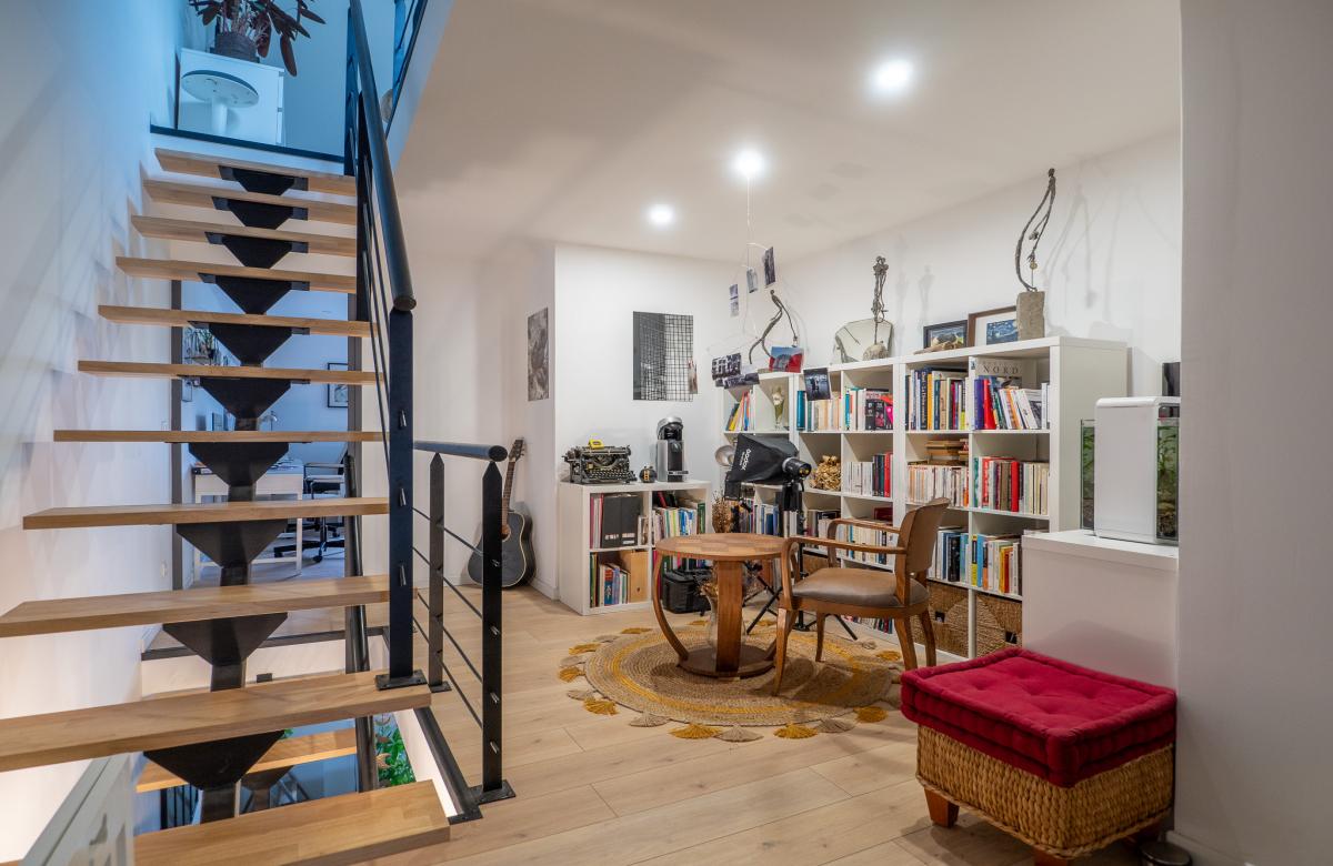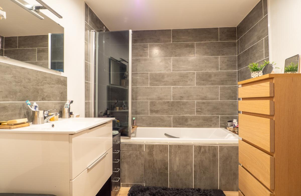 Salon / Salle à Manger + Cuisine équipée ouverte 45 m2 - 1 er étage : 2 Chambres parquetées + SDB avec Douche et Baignoire -