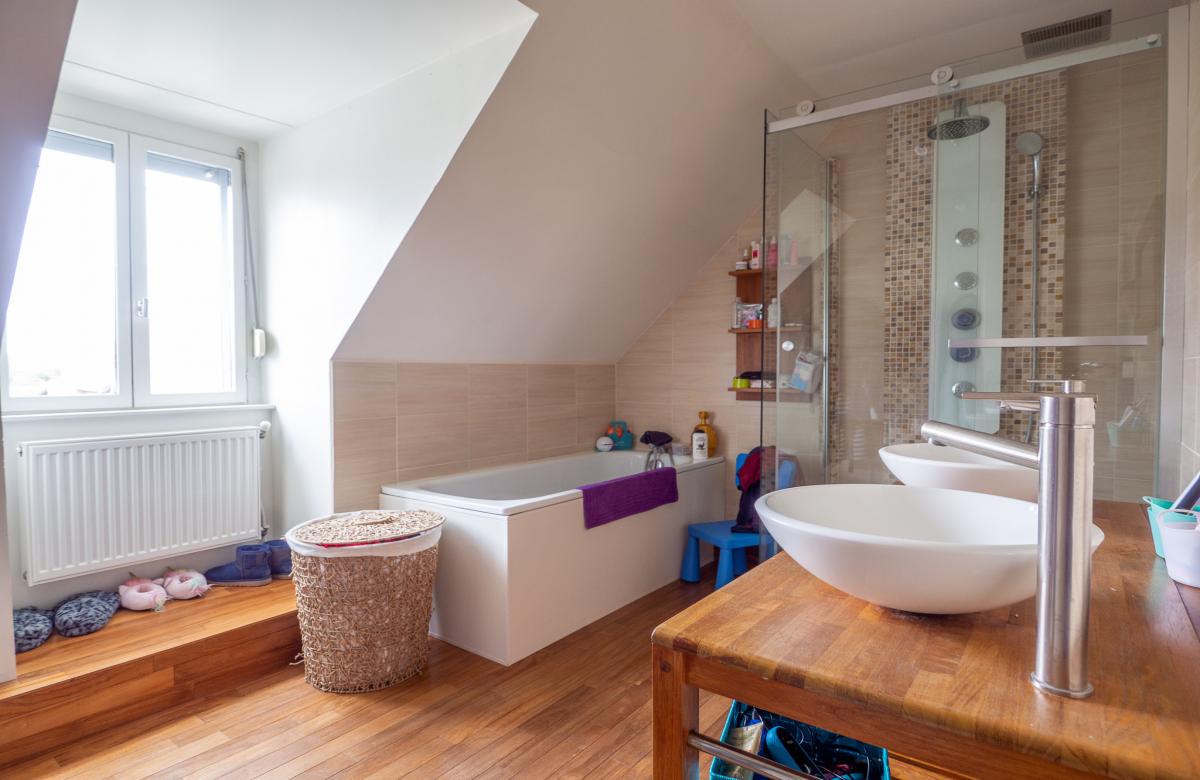 Maison des années 80 d'environ 105 m2 habitable, bâtie sur 988 m2 - Séjour + Cuisine équipée 45 m2 - À l'étage : 3 chambres - Salle de bains - Bureau - Garage et stationnement privé - Magnifique jardin - Disponibilité mi Juin 2022 - Faire vite ! EXCLUSIVITE !