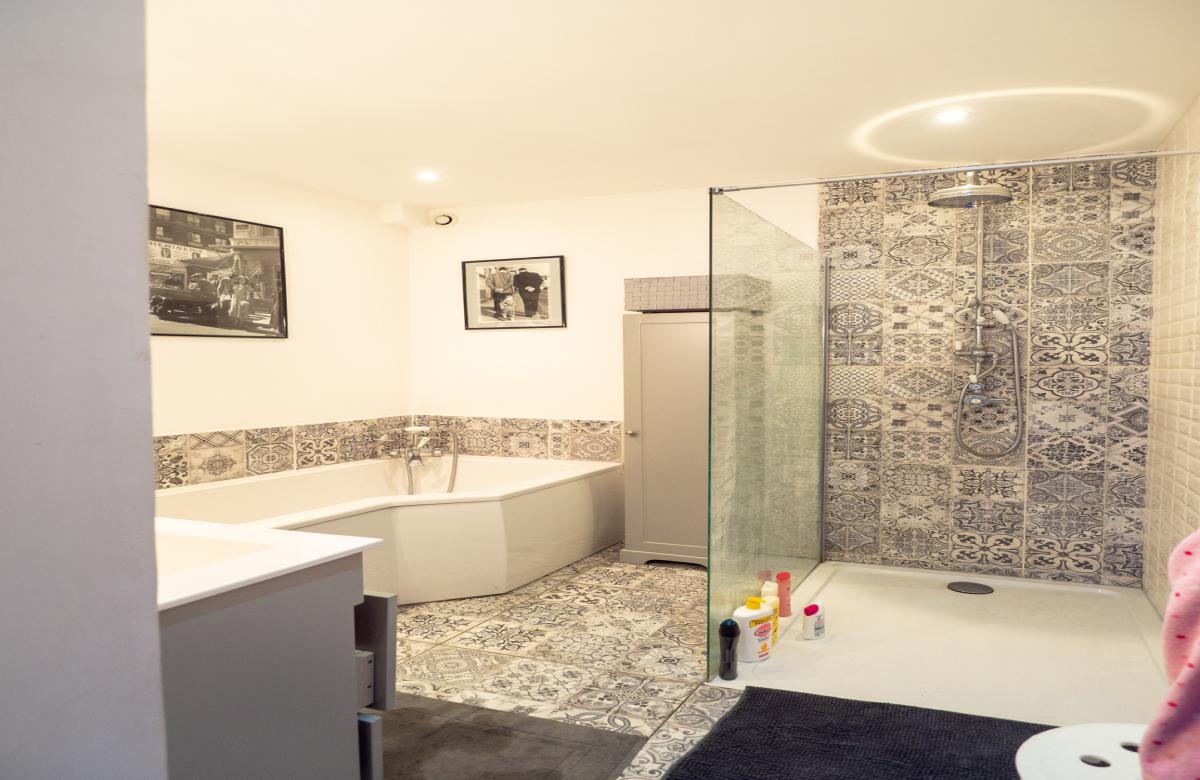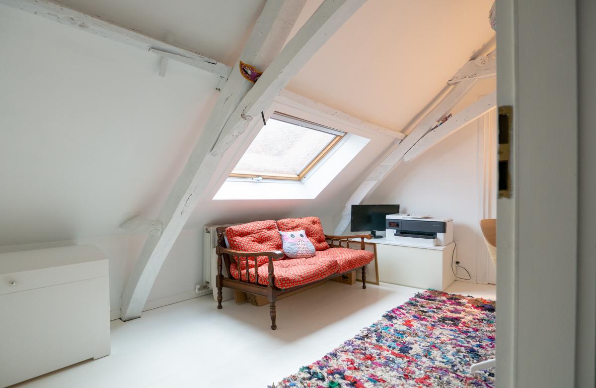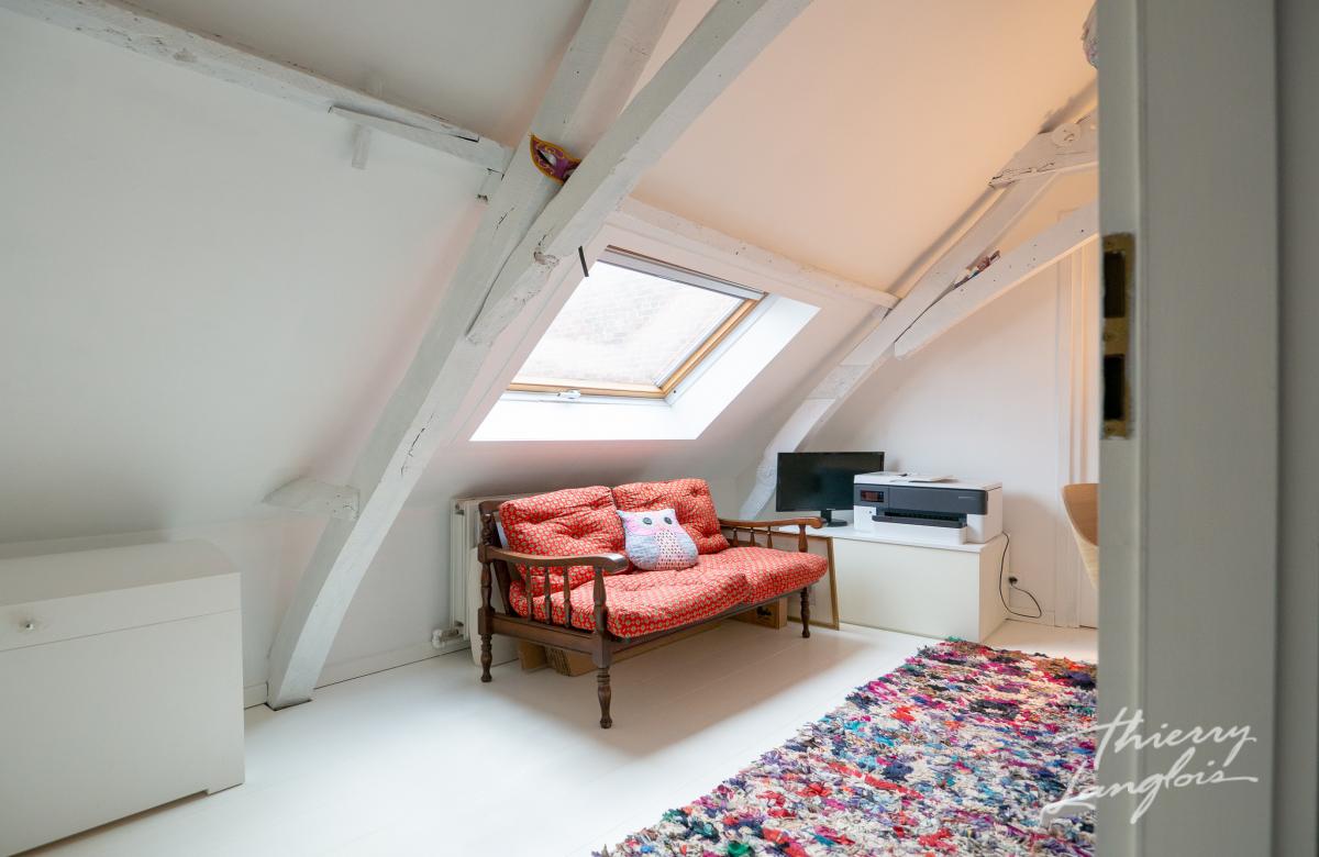 Séjour parqueté avec briques apparentes + cuisine équipée 62m2