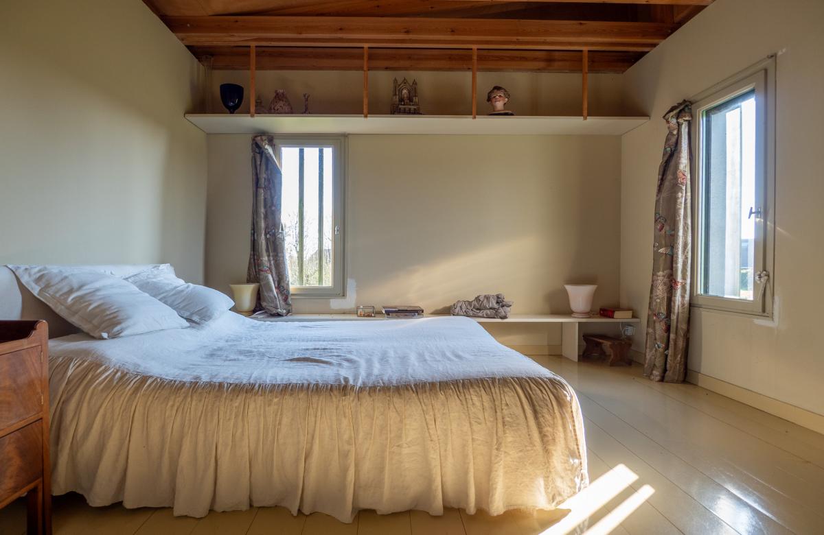 L’extension contemporaine, aux lignes épurées et aux matériaux soigneusement sélectionnés, accueille une chambre supplémentaire et une lingerie. Elle peut également être envisagée comme un espace professionnel indépendant, bureau ou cabinet, parfaitement intégré à l’ensemble architectural.