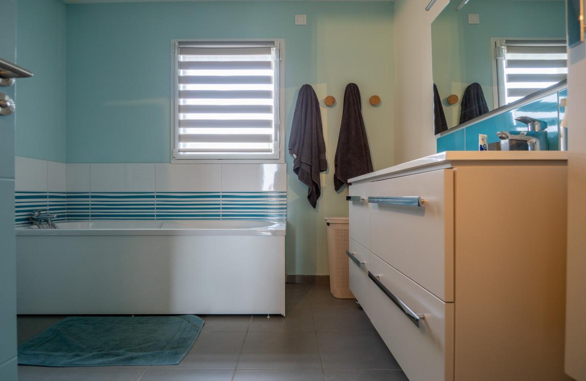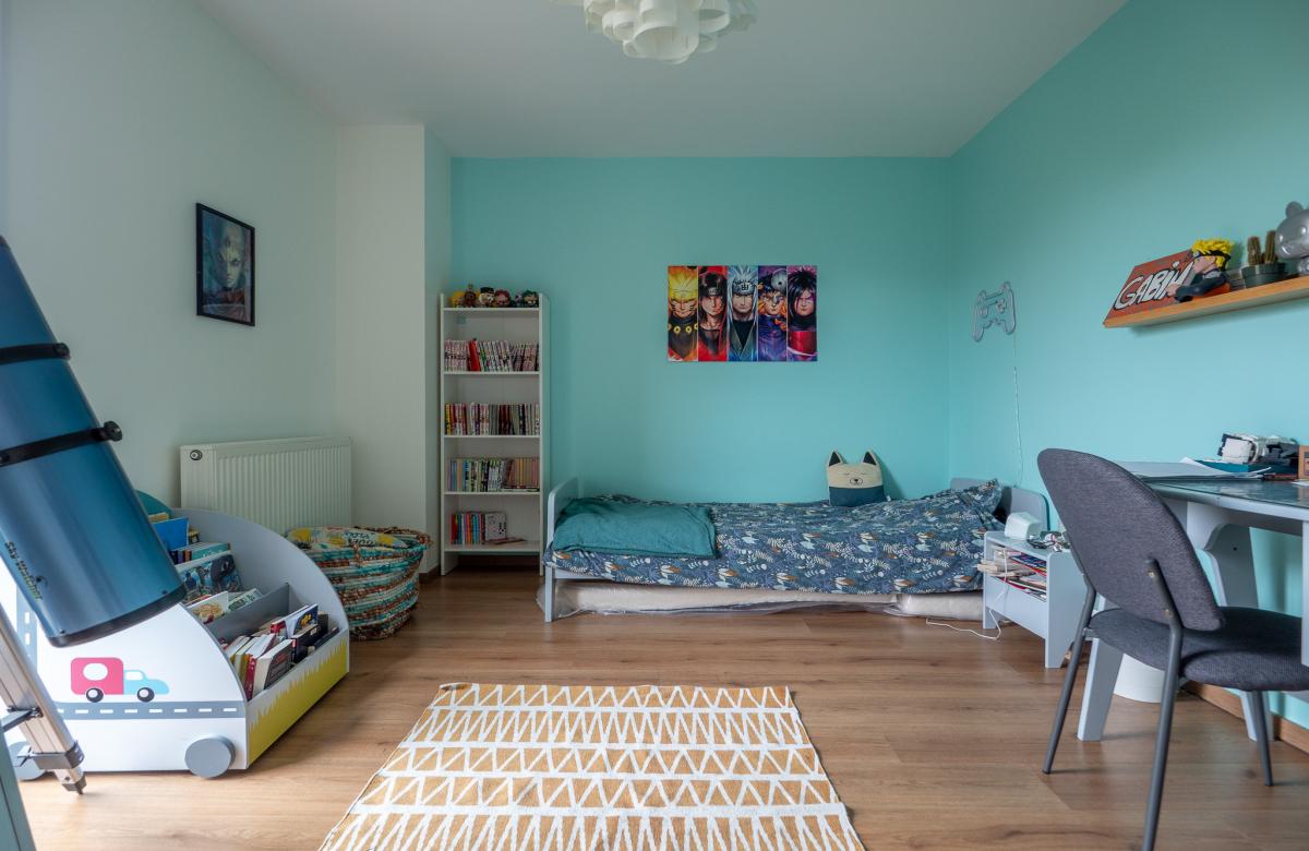 À l’étage, l’espace nuit propose 4 chambres confortables, dont une suite parentale avec salle de bain privative, ainsi qu’une seconde salle de bain, parfaitement adaptée à la vie de famille.