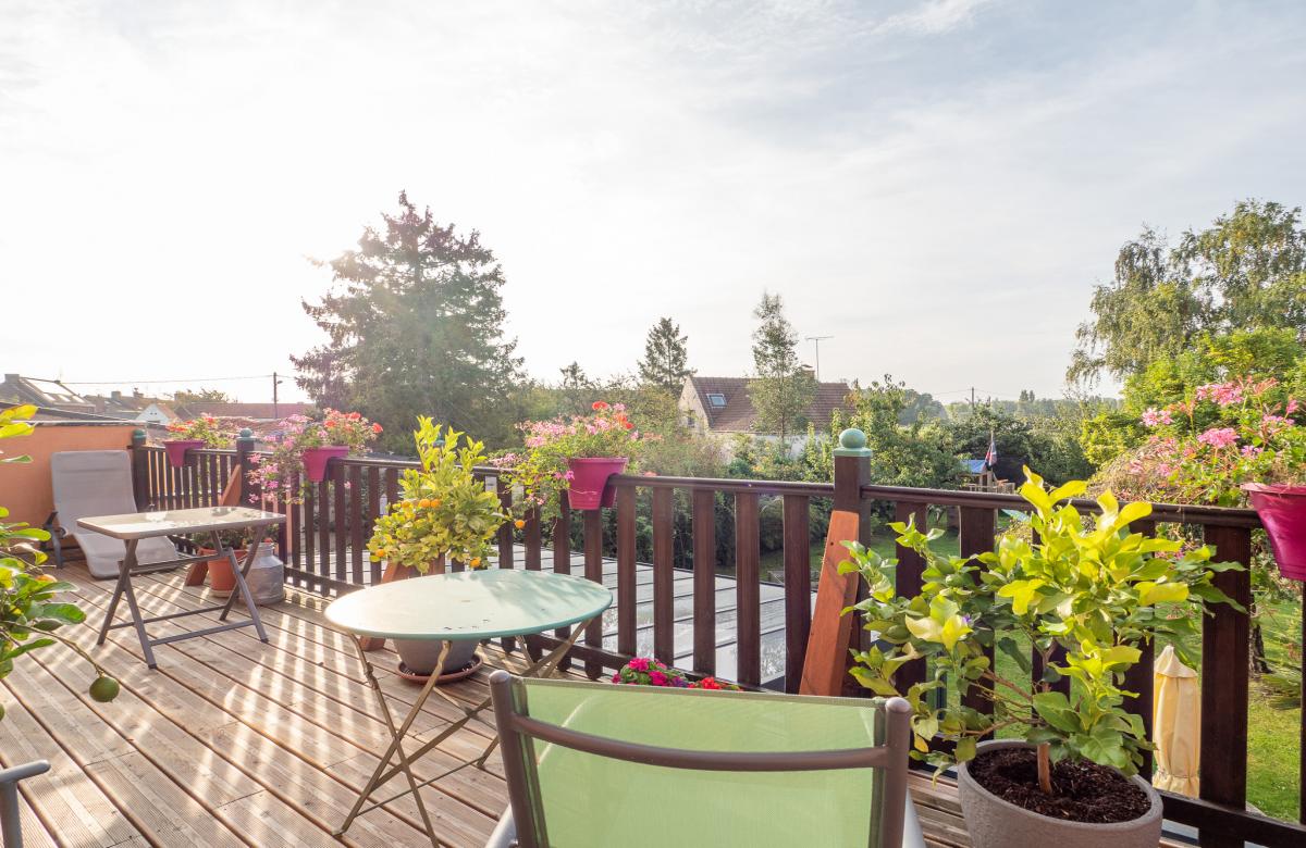 A l'étage: Séjour + cuisine équipée 50m2 et 1 chambre et salle de bain avec terrasse exposé Sud -