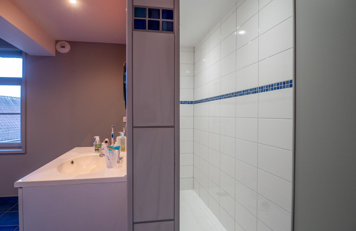 À l’étage, la partie nuit se compose de 4 chambres, d’une salle de douche familiale dont une suite parentale avec chambre, dressing et salle de douche privative.