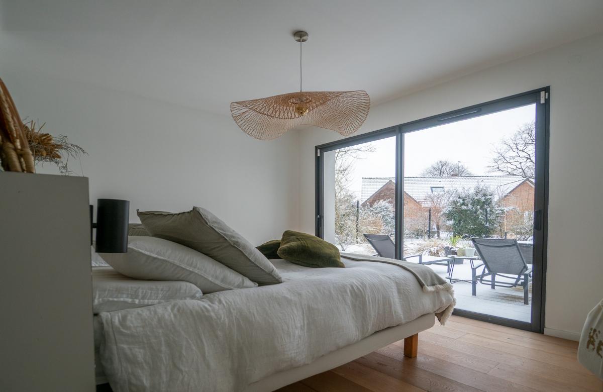 À proximité de Camphin-en-Pévèle, cette villa cubique d’architecte construite en 2020 séduit par ses lignes contemporaines et ses prestations de qualité.