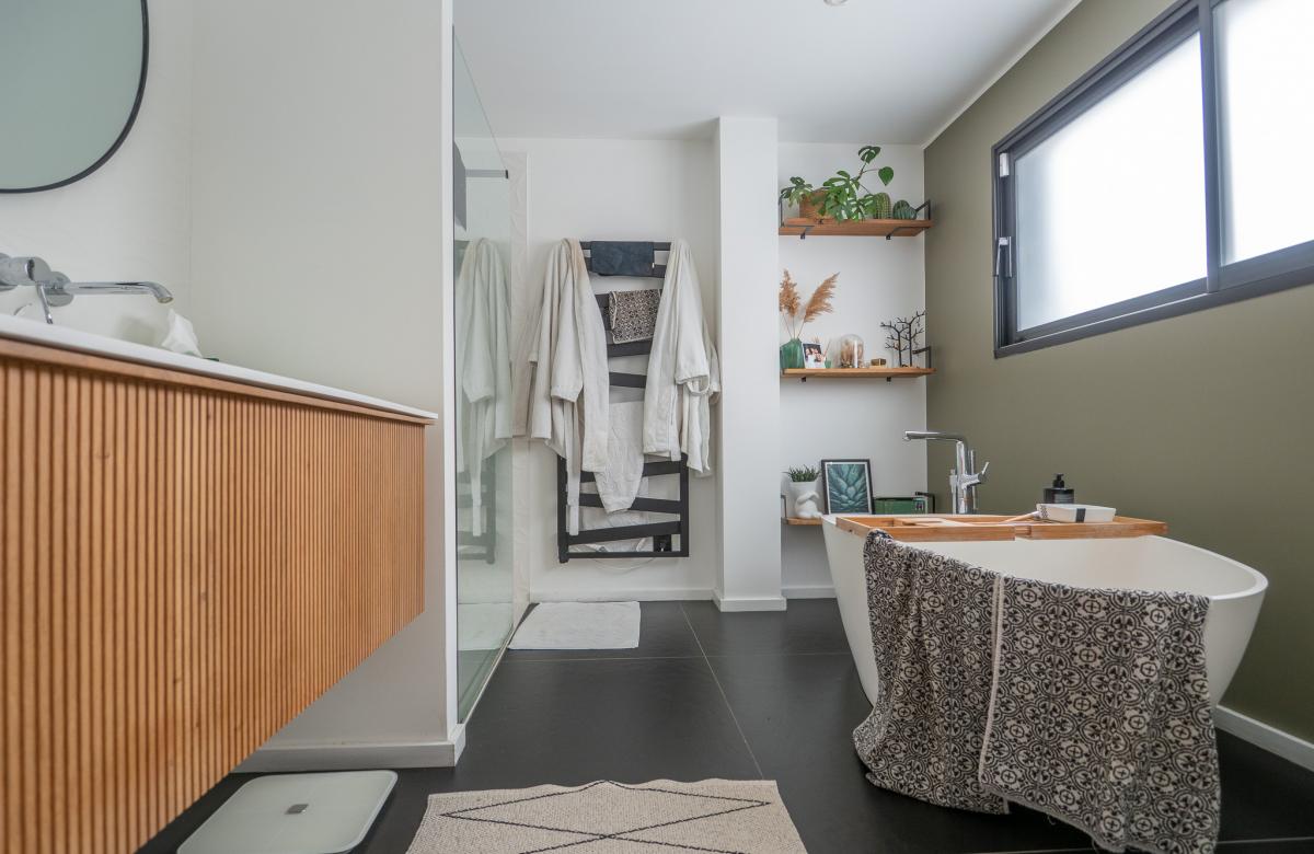Au rez-de-chaussée, un véritable appartement parental (chambre, dressing, salle de bain) ainsi qu’un bureau apportent confort et fonctionnalité.