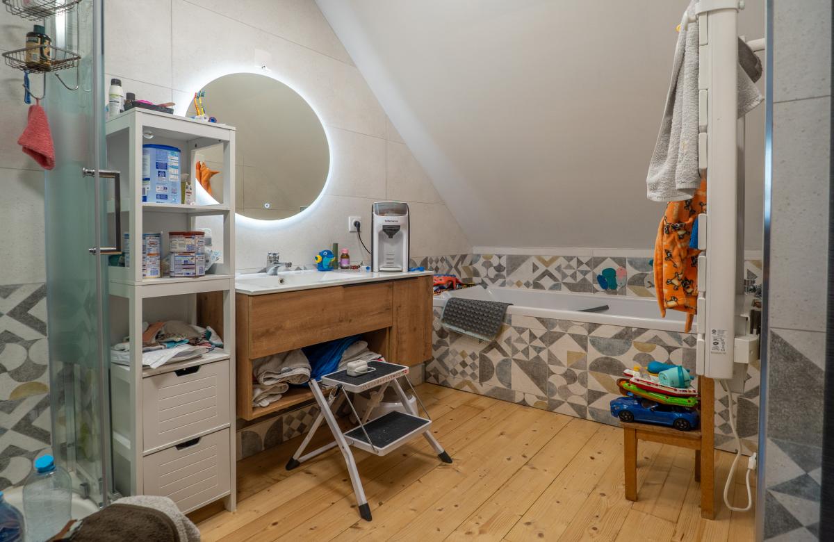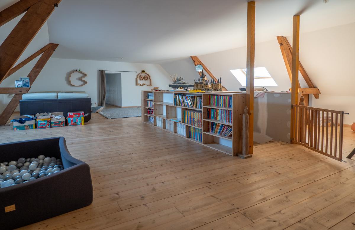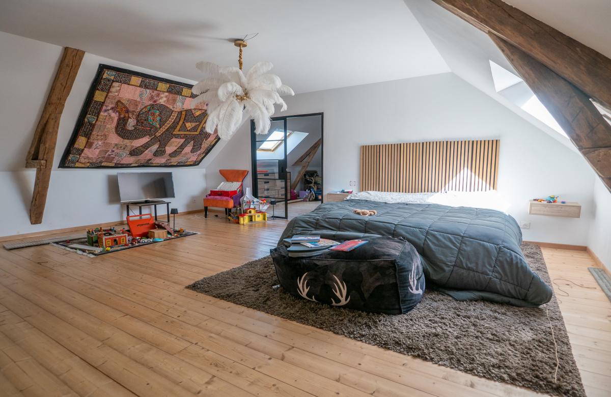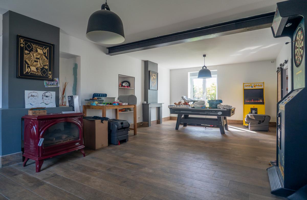 À l’étage, les volumes se prolongent avec une distribution idéale pour une vie de famille, comprenant une grande salle de jeux de 52 m2, 2 chambres, une salle de bains, ainsi qu’une suite parentale confortable avec dressing et salle de bain, offrant un espace nuit indépendant et privilégié.