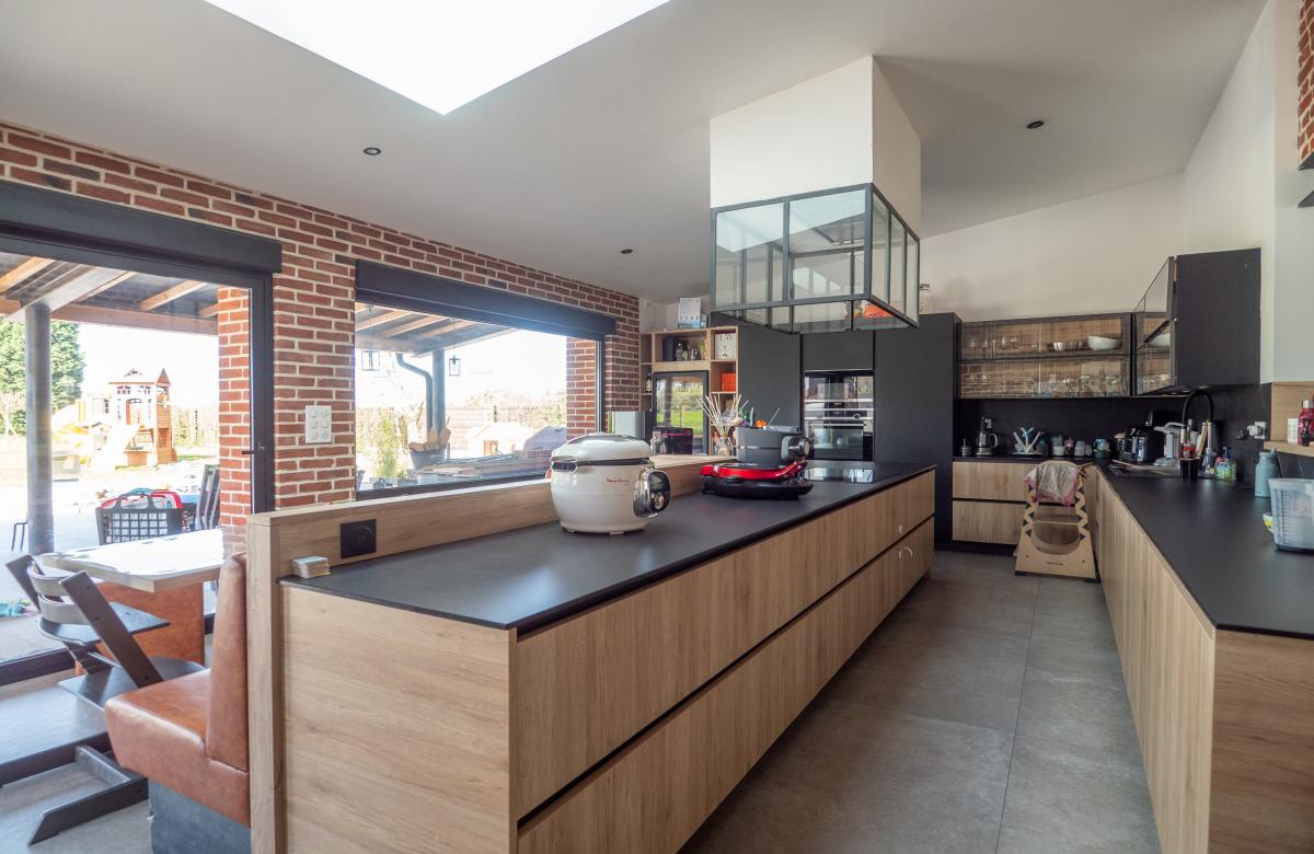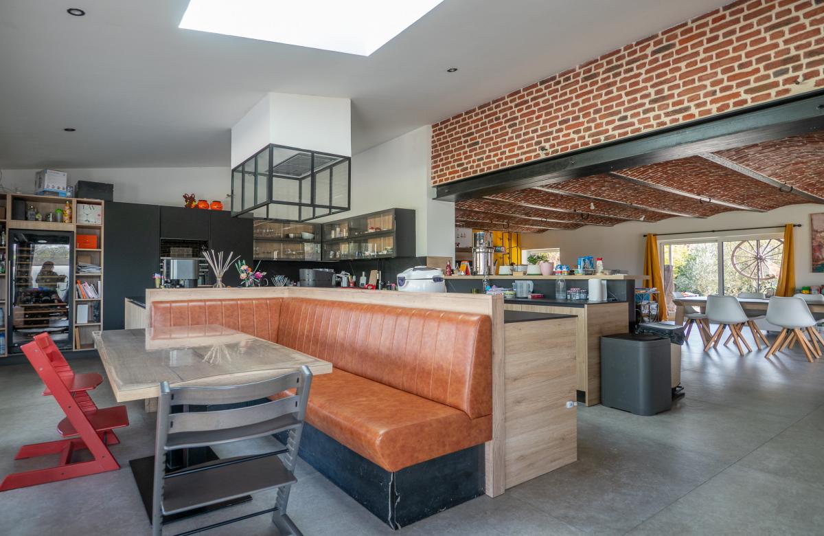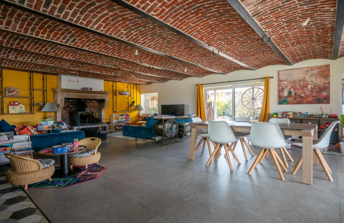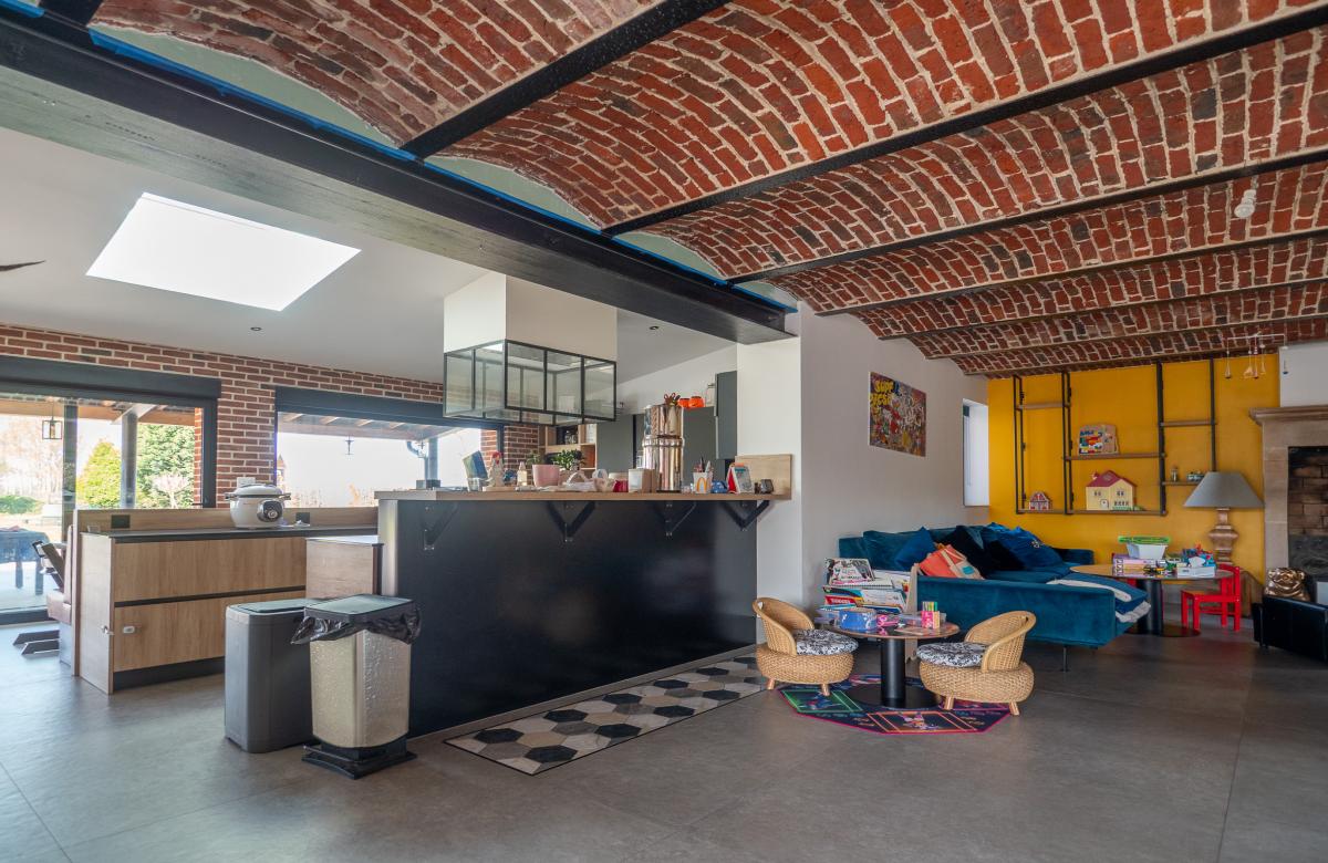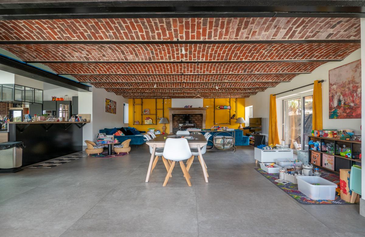 Dès l’entrée, les volumes impressionnent avec un magnifique salon séjour de 73 m2 sublimé par des plafonds voûtés, apportant élégance et caractère à l’ensemble. La cuisine équipée de 38 m2, à la fois moderne et fonctionnelle, s’ouvre harmonieusement sur l’espace de vie pour une convivialité optimale.