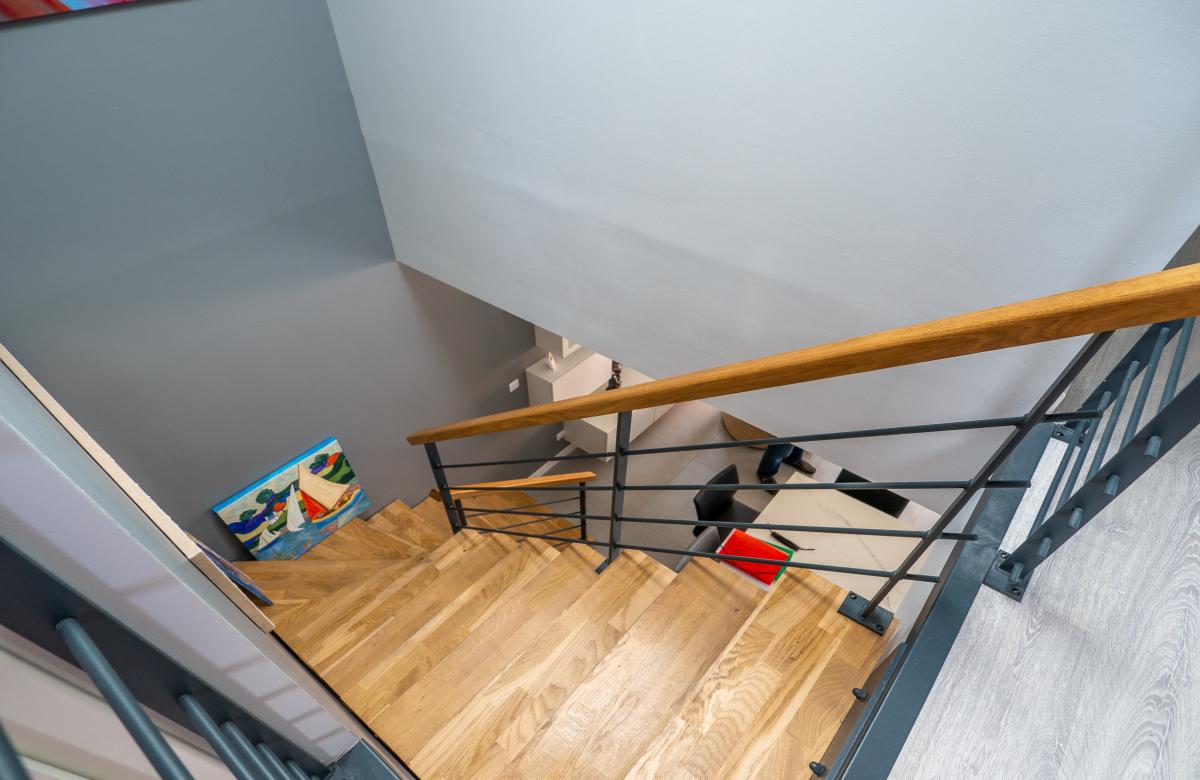 Le rez-de-chaussée propose un vaste séjour traversant baigné de lumière, avec une cuisine équipée moderne et fonctionnelle, idéal pour les moments de partage. Une suite parentale avec salle de douche permet une vie de plain-pied, très recherchée sur le secteur.