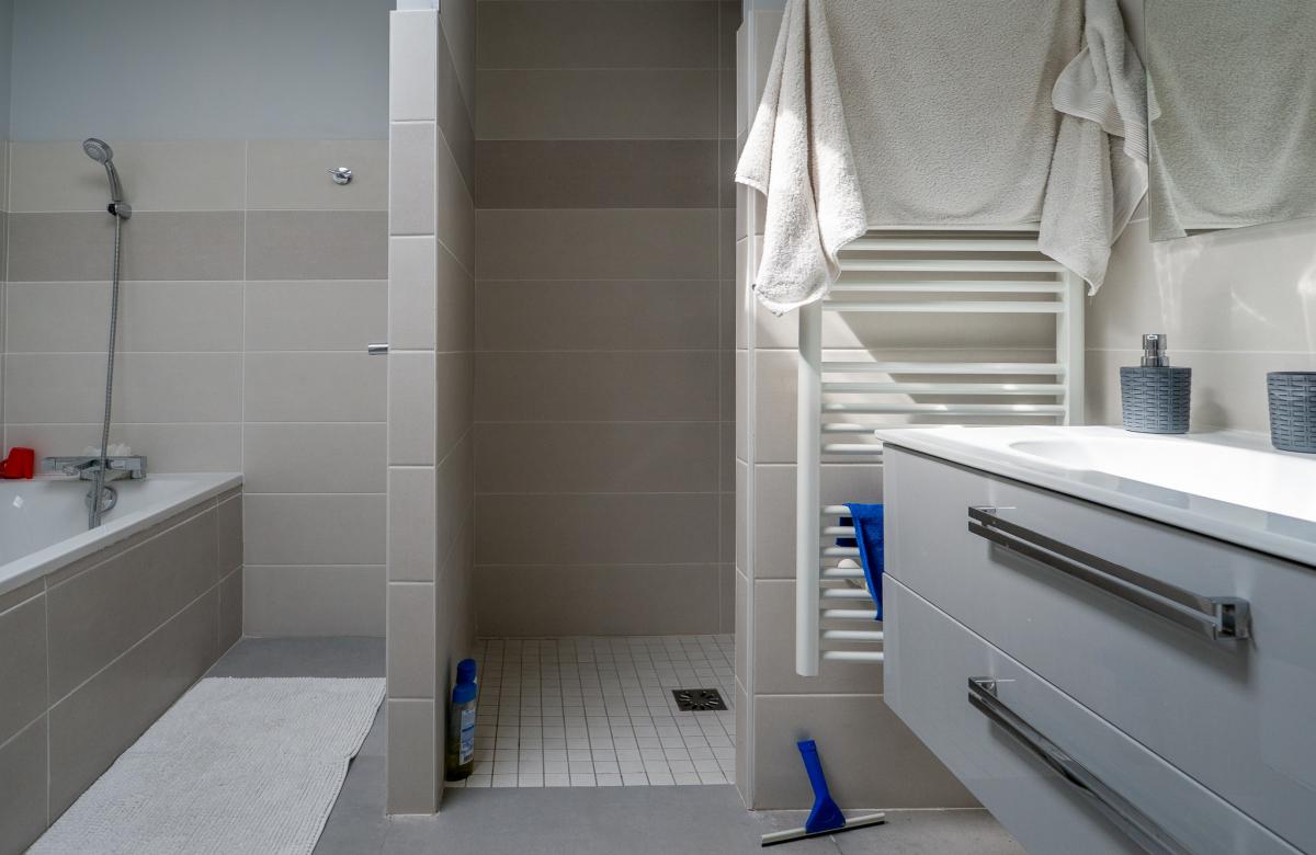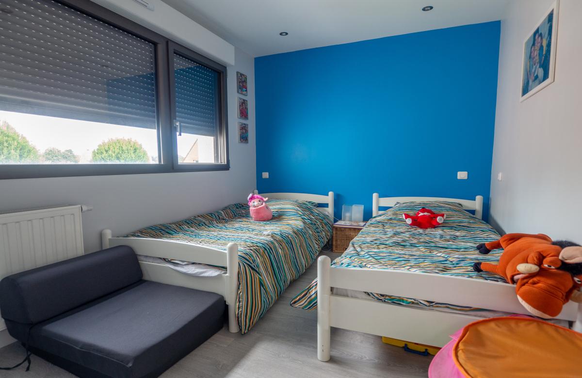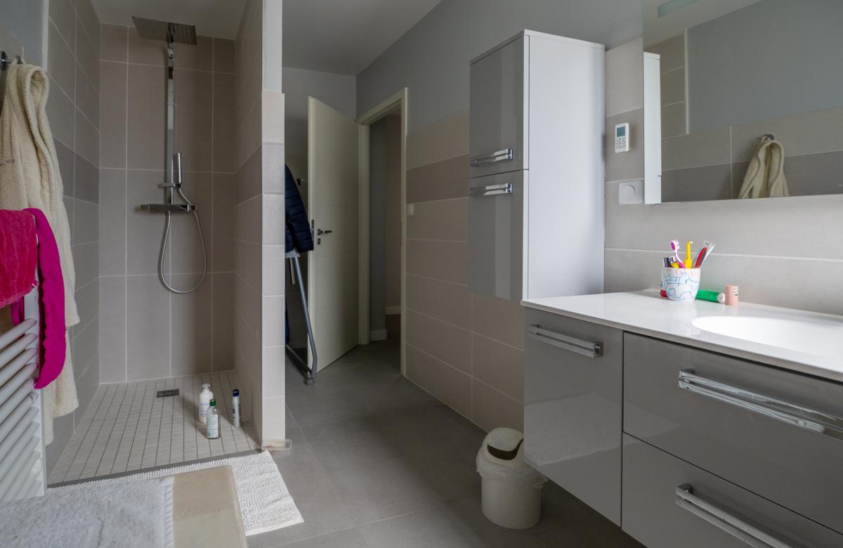 À l'étage, trois belles chambres avec placards intégrés accueillent toute la famille, accompagnées d'une salle de bain complète avec douche et baignoire.