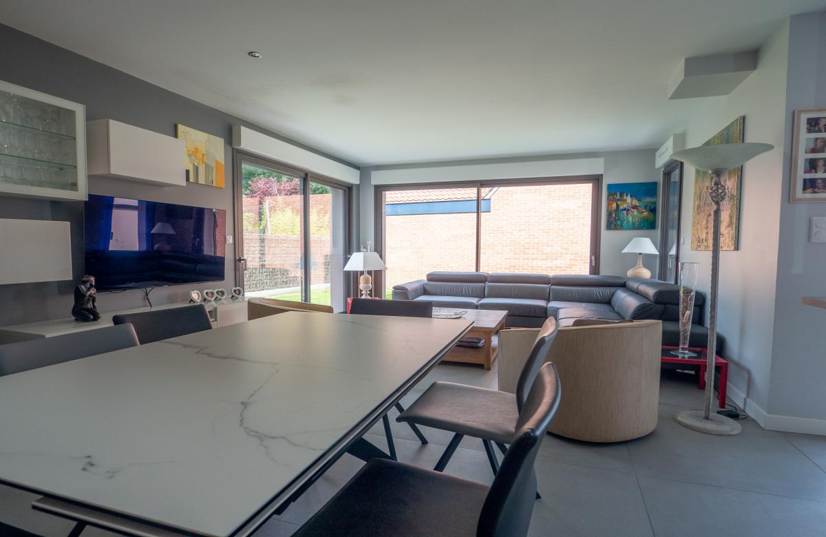 Idéalement située en plein cœur de Chéreng, cette maison cubique récente en semi plain-pied développe 121 m2 habitables et combine architecture contemporaine, confort de vie et emplacement privilégié.
