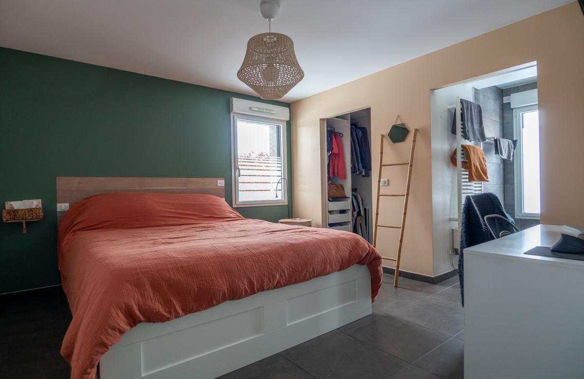 À l’étage, la maison propose trois chambres supplémentaires, toutes équipées de placards intégrés, ainsi qu’une salle de bain complète avec baignoire et douche