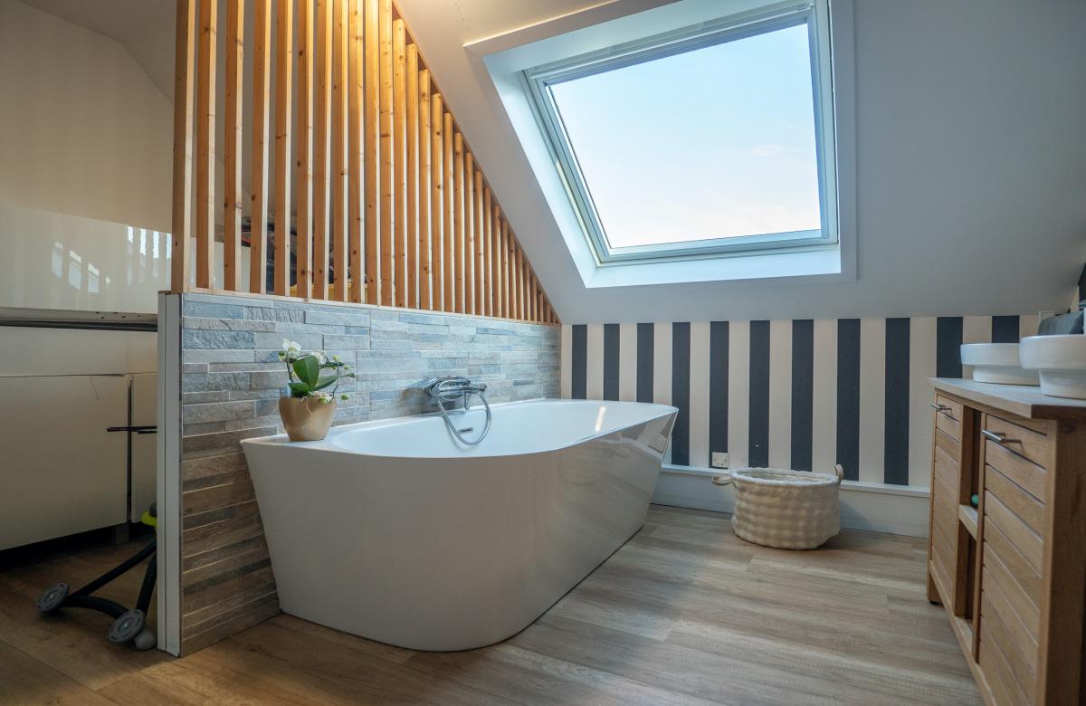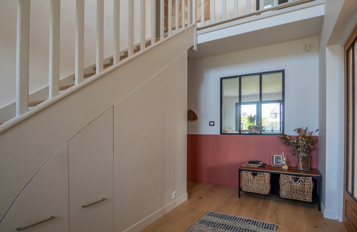 À l’étage, l’espace nuit se compose de quatre chambres bien agencées et parfaitement proportionnées, accompagnées d’une seconde salle de bain, idéale pour une famille.
