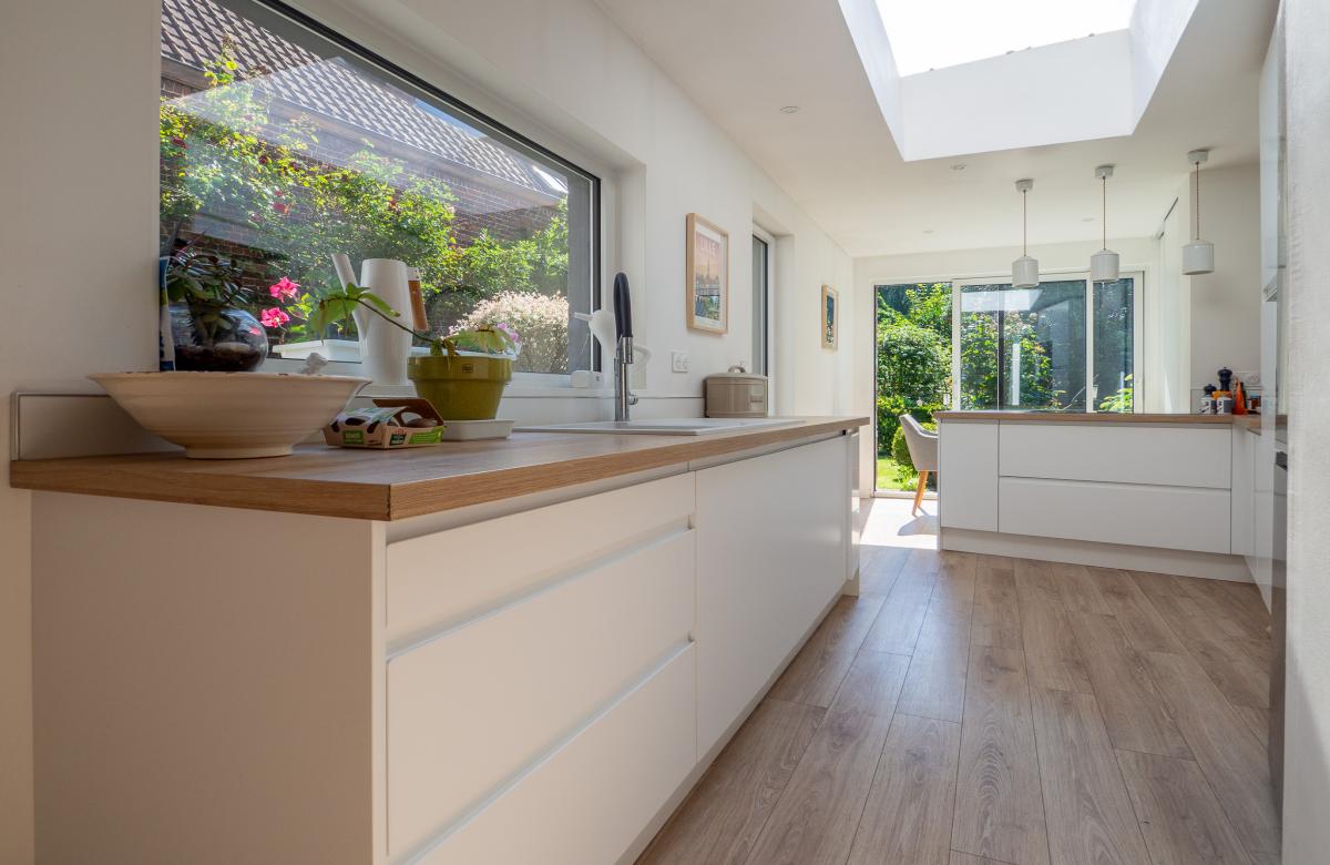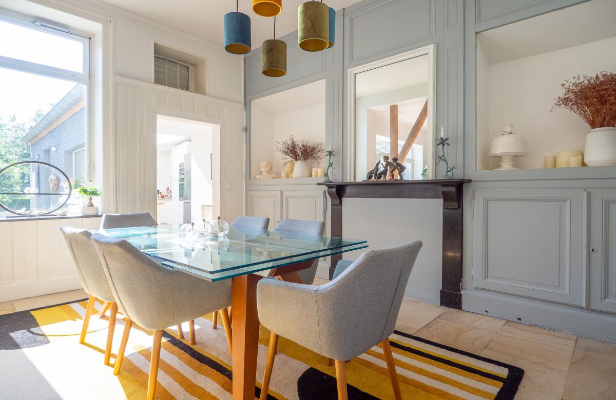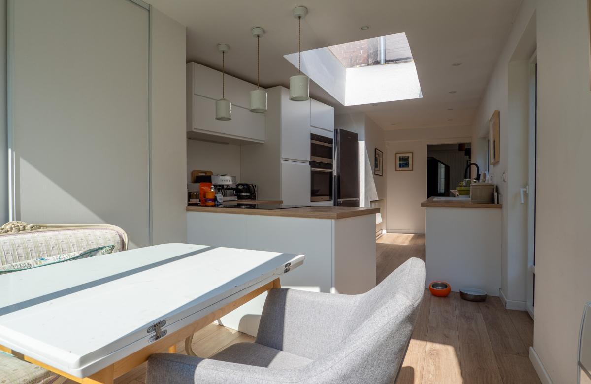 Vous découvrirez un séjour lumineux prolongé d'une salle à manger conviviale, ainsi qu'une grande cuisine équipée avec coin repas, ouverte sur le jardin.