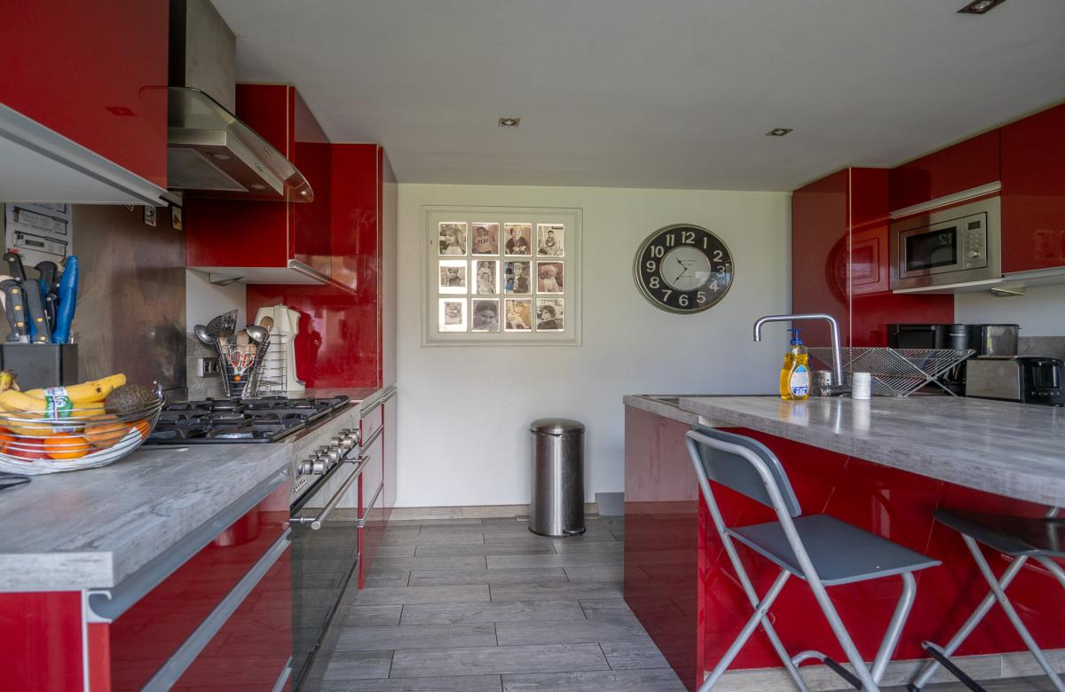 La cuisine équipée, moderne et fonctionnelle, s’intègre parfaitement à l’espace de vie pour un confort quotidien optimal.
