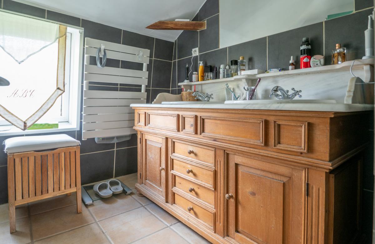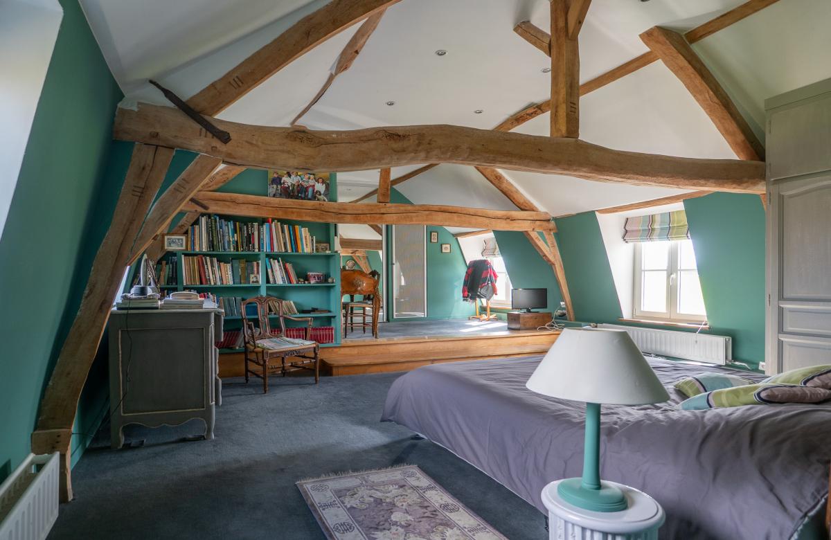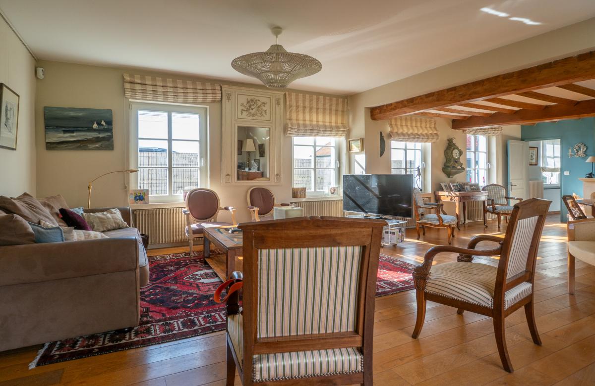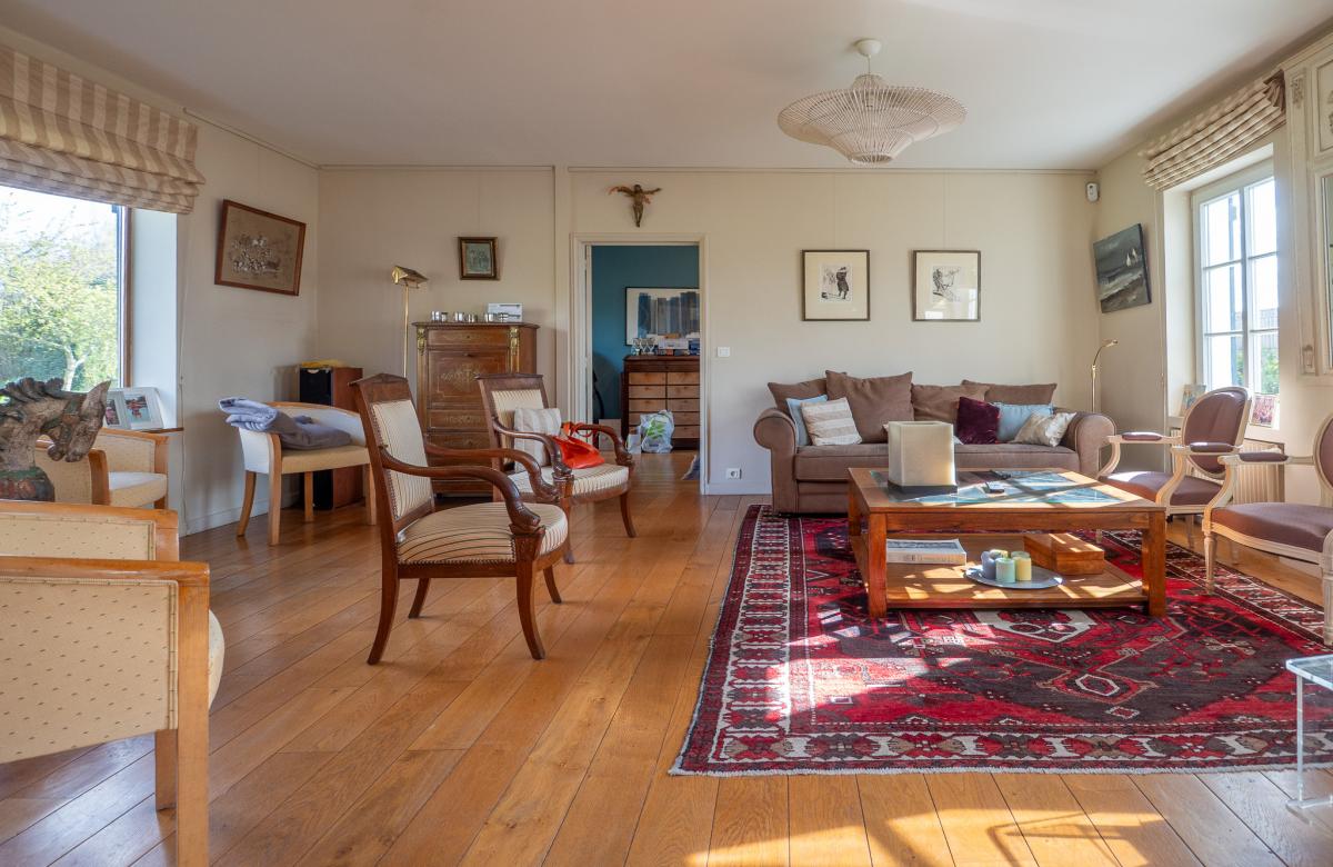 Dès l’entrée, vous serez séduit par un vaste salon-séjour traversant, baigné de lumière, sublimé par un parquet chaleureux et de magnifiques poutres apparentes, offrant un cachet authentique incomparable.