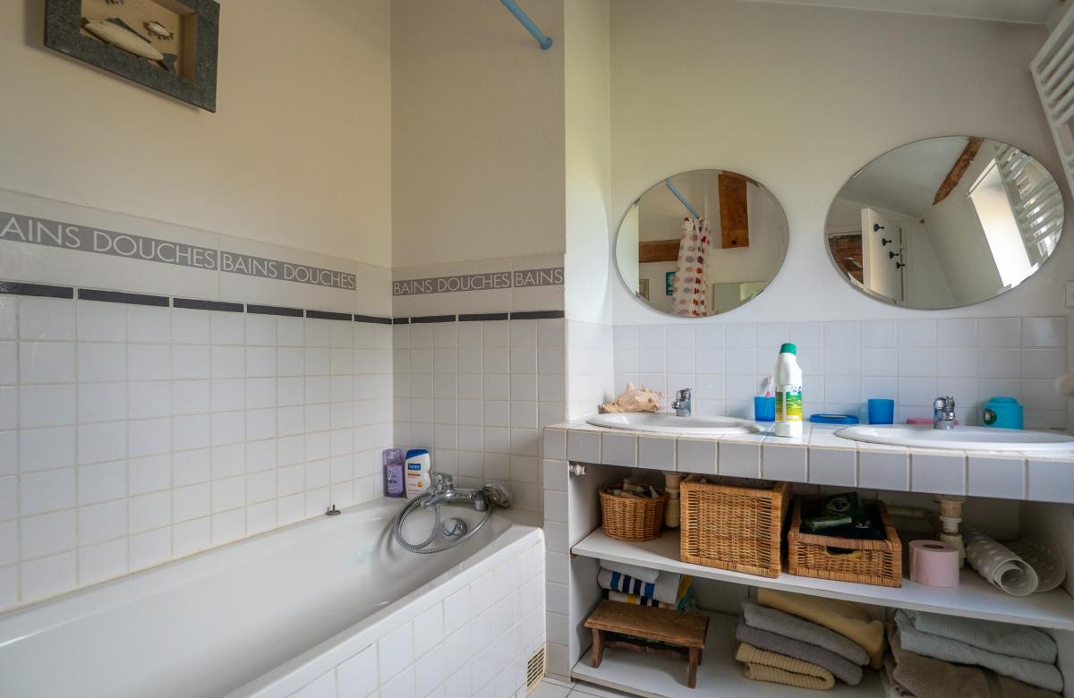 À l’étage, l’espace nuit se compose de 4 belles chambres aux volumes généreux, dont une spacieuse suite parentale de 30 m2 avec dressing et salle de douche. Une salle de bain avec WC complète ce niveau.