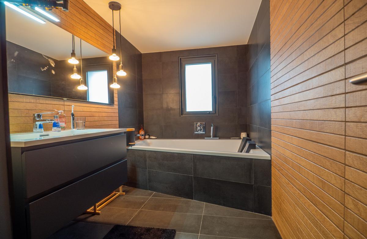 À l’étage, vous retrouverez une suite parentale avec dressing et salle de douche, un appartement adolescent avec sa propre salle de douche, deux chambres supplémentaires, une salle de bain ainsi qu’un espace de combles aménagés pouvant accueillir une chambre complémentaire selon vos besoins