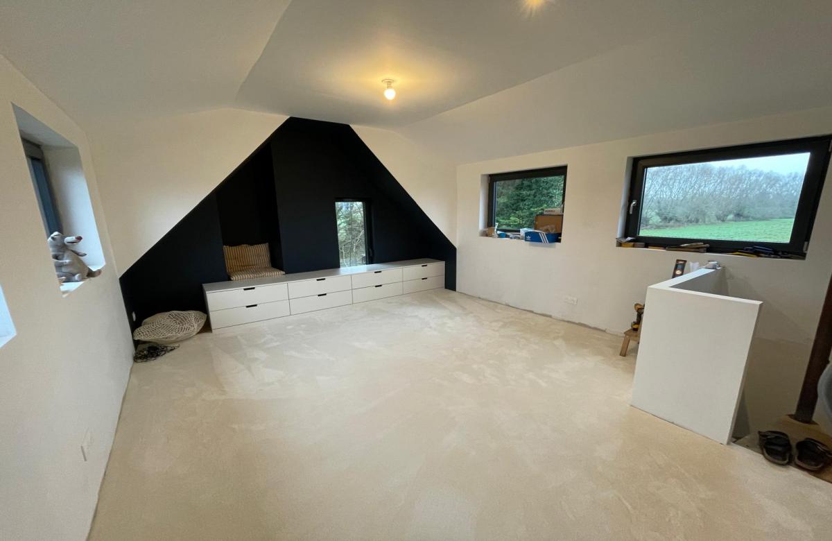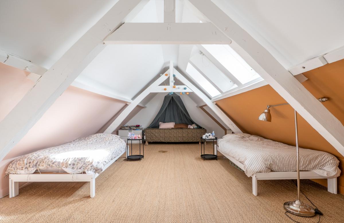 À l’étage, vous découvrirez deux chambres supplémentaires, une mezzanine de 12 m2 offrant la possibilité d’aménager une quatrième chambre, ainsi qu’une salle de bain avec WC.
