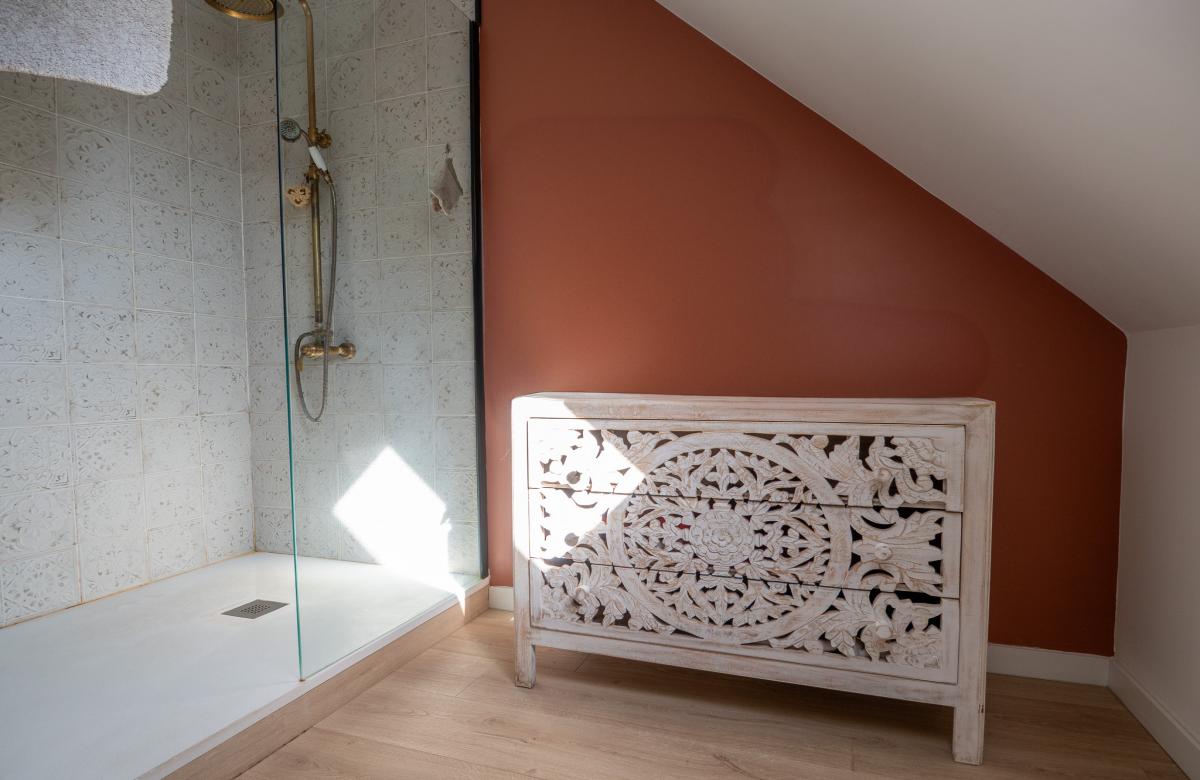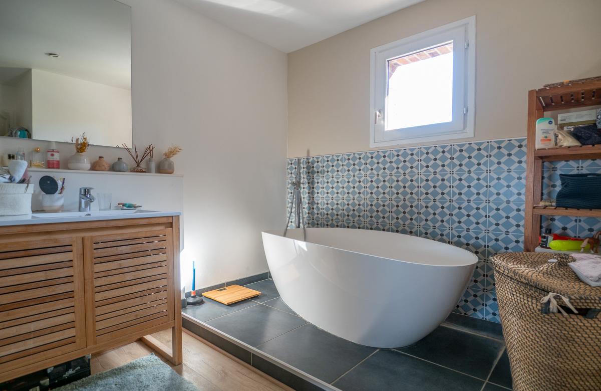 Le rez-de-chaussée dispose d’une grande chambre avec salle de bain, idéal pour une vie de plain-pied. À l’étage, 4 chambres dont une suite parentale avec dressing et salle de bain offrent tout le confort familial.