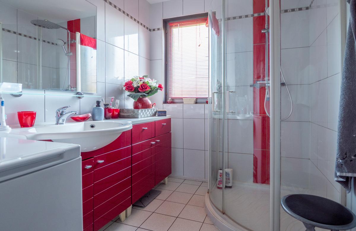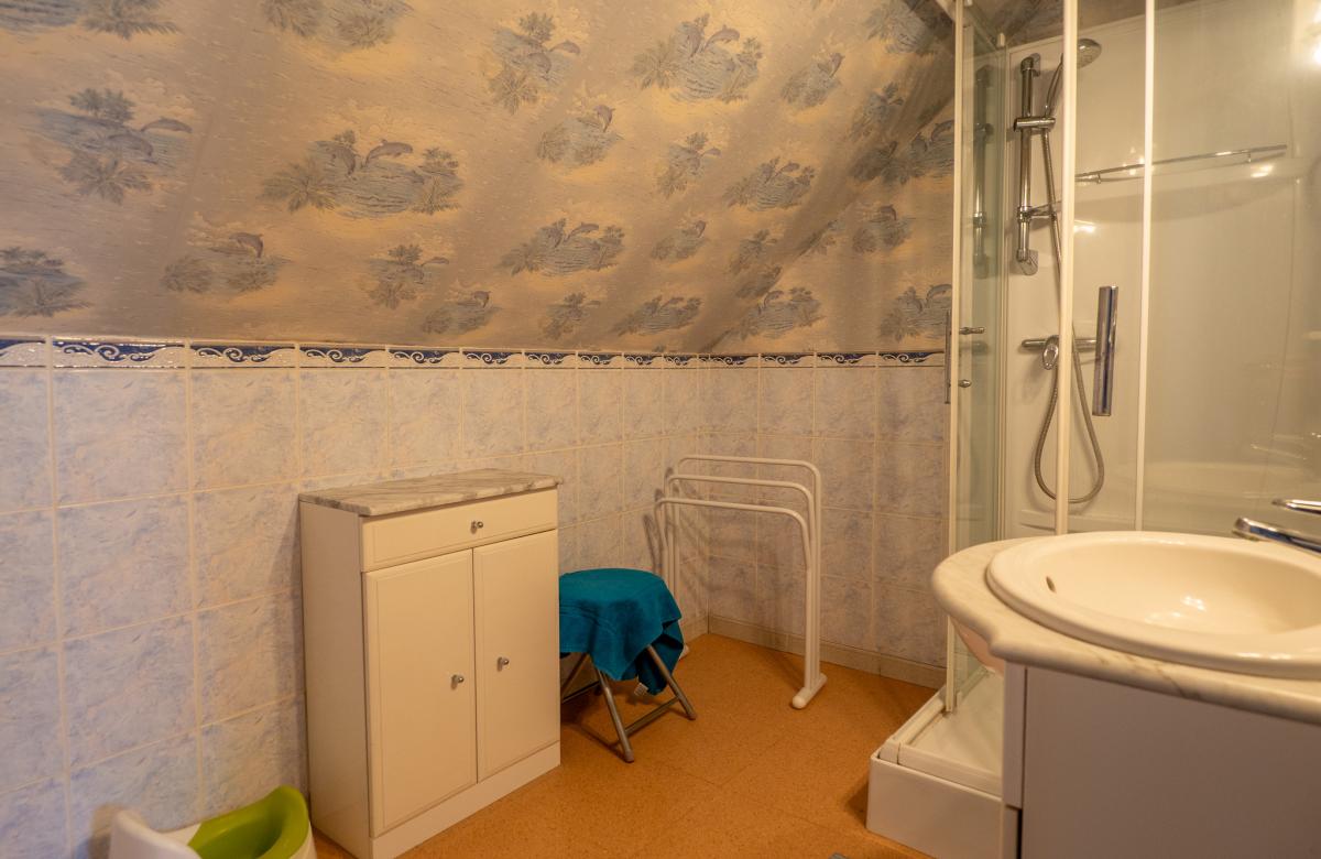 À l’étage, un grand palier distribue deux chambres et une seconde salle de douche.