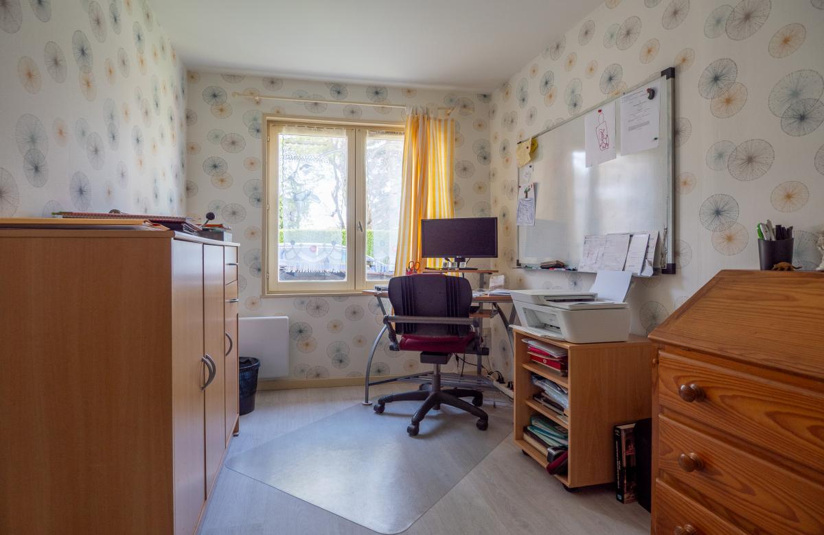 Le rez-de-chaussée propose un bel espace de vie avec salon, salle à manger et insert bois, ouvert sur une cuisine équipée conviviale, deux chambres, un bureau ainsi qu’une salle de douche complètent ce niveau, permettant une vie de plain-pied confortable.