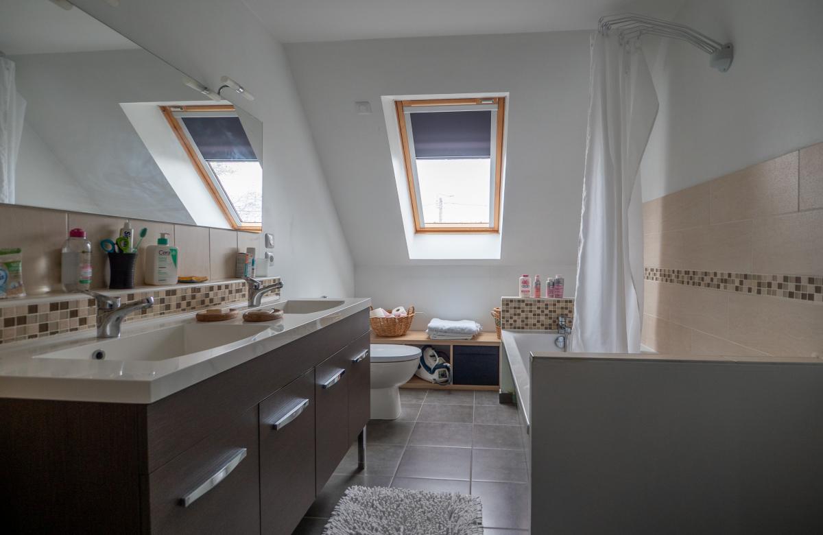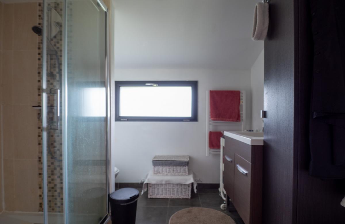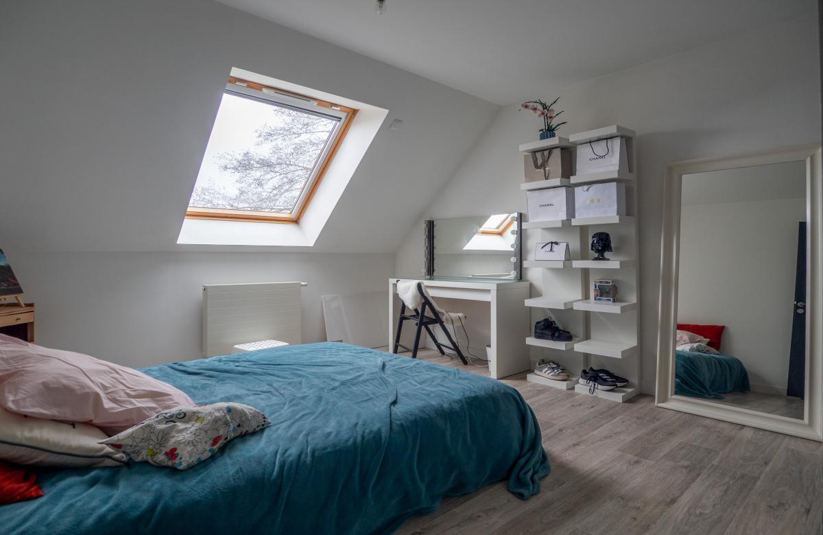 À l’étage, trois belles chambres lumineuses et une salle de bain viennent parfaire l’espace nuit, offrant confort et fonctionnalité.