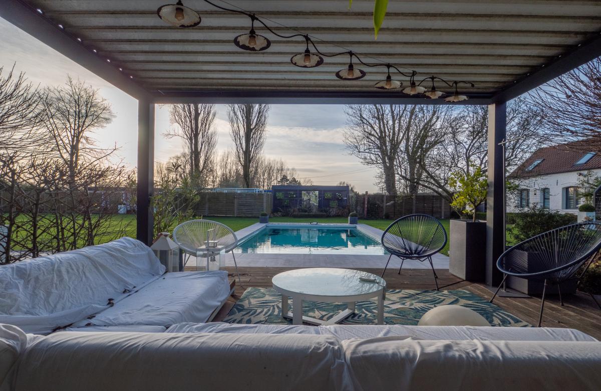 Située à Tilloy-lez-Marchiennes, dans un cadre verdoyant et paisible, cette superbe longère individuelle rénovée et agrandie de 210 m2 habitables vous séduira par son caractère unique et ses prestations haut de gamme. Nichée sur un terrain arboré de 1 980 m2, elle offre de nombreux espaces pour se détendre et recevoir : un jardin paysagé sans vis-à -vis plien sud, un pool house, un jacuzzi extérieur, une piscine chauffée, et trois terrasses : l’une équipée d’une pergola, la seconde avec un store banne motorisé, et la troisième ornée d’une pergola de glycine.