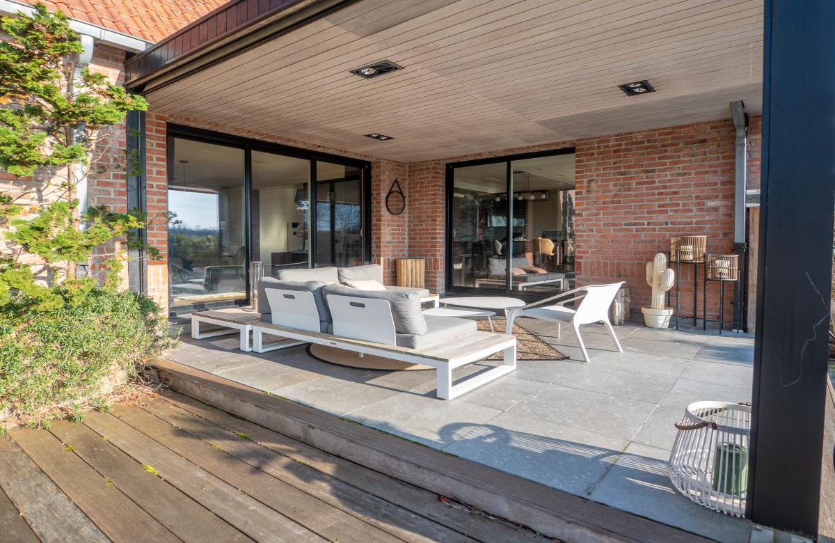 À l’extérieur, le magnifique jardin paysagé, parfaitement exposé, dispose d’une piscine chauffée et d’une terrasse couverte avec une vue dégagée, créant un cadre idéal pour vos moments de détente.